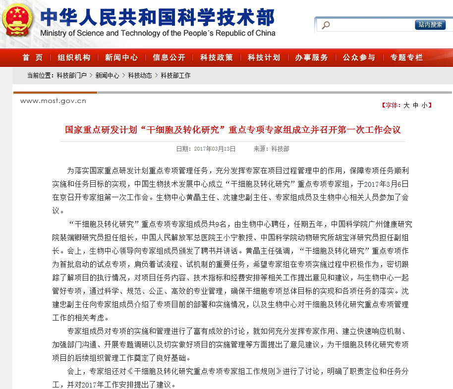 為落實國家重點研發(fā)計劃重點專項管理任務(wù),充分發(fā)揮專家在項目過程管理中的作用,保障專項任務(wù)順利實施和任務(wù)目標的實現(xiàn),中國生物技術(shù)發(fā)展中心(以下簡稱“生物中心”)成立“干細胞及轉(zhuǎn)化研究”重點專項專家組,于2017年3月6日在京召開專家組第一次工作會。…