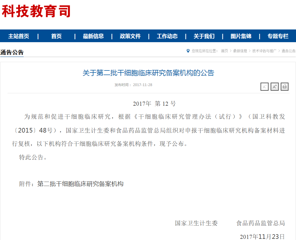 截止至2017年11月28日,我國(guó)一共有102家醫(yī)院(干細(xì)胞臨床研究機(jī)構(gòu))通過(guò)備案。附件: